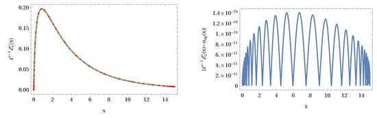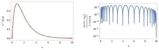A true ℵ function using a Mellin representation approximated with Sinc points (left panel). The right panel shows the local relative error where is given by a Sinc approximation with .