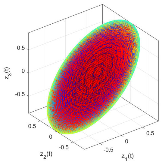 Scheme A: It is worth noting that the maximization of the estimation set of admissible initial values is equivalent to the minimization of the value of . Thus, for given parameters , , and -matrices Q, K, the aim is to obtain the region of admissible initial values by employing the next optimization scheme: