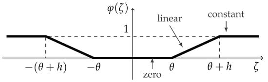 The necessity to substitute fractional Laplacians for Laplacians stems from the need to represent anomalous diffusion. In probabilistic terms, it is equivalent to replacing the next neighbor interaction of random walks and their limit, the Brownian motion, by long-distance interaction. In a stochastic process, represents the expected value of a random variable related to a process with a random jump far from the point x. A distinct difference from the classical case is that when one exits from , they are necessarily on , since the Brownian motion is continuous. In view of the process’ jumping nature, it is possible to end up anywhere outside at the exit time. Thus, the natural nonhomogeneous Dirichlet boundary condition consists of associating the values of u with instead of . Then, the adequate functional framework to look for a solution is the space vanishing outside . It must be noted that, in a bounded domain, there is another way to give a formulation of the problem.