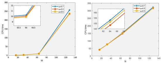 In order to construct the FD-FE scheme, we divide the time domain I into subdomins with . Following [42,43], we approximate the fractional derivative as follows