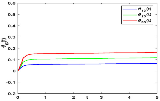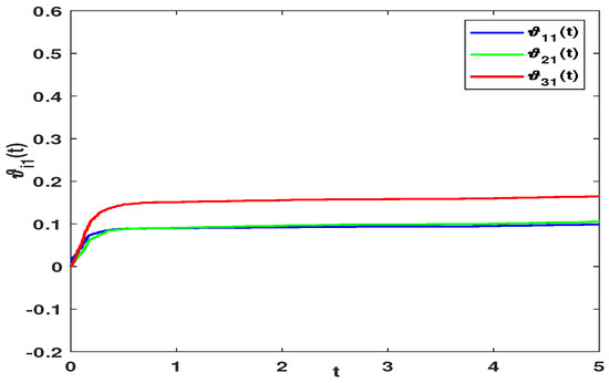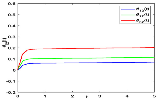 The adaptive laws , and are demonstrated in Figure 7, Figure 8 and Figure 9. The adaptive laws finally tend to be constants, which indicates that the FATSMC achieves the estimation of the external disturbances. As a consequence, the theoretical result in this paper is feasible.