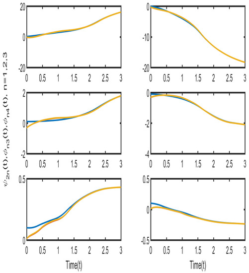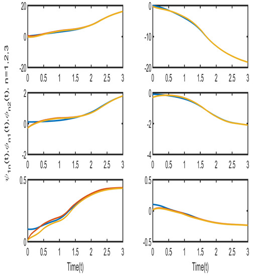 Case (ii): We consider the state of the model (23) as in the three-dimensional complex domain , that is . Then, the system parameters are must be three-dimensional and are taken as