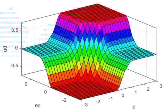 The control surfaces for the SIFOFLC and conventional T-S FLC are respectively shown in Figure 6 and Figure 7. Compared with the complex curved surface of T-S FLC, the control surface of SIFOFLC has been simplified to a linear with different slopes. Thus, the computation burden of controller operation, which includes fuzzification, fuzzy inference and defuzzification, has been significantly reduced.