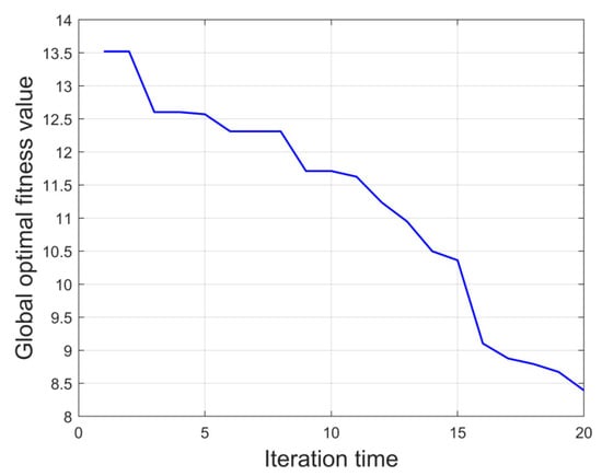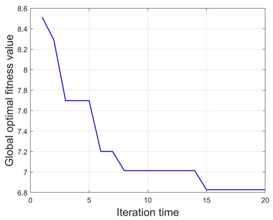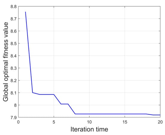 Step 4: The optimization is terminated when it reaches the maximum number of evolutions. Then the global best position is output, which is the target parameters of the controller. The convergence curve of optimal fitness value is also printed.