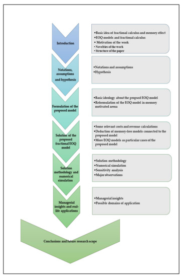 Demand forecasting and optimal lot-size scheduling are essential issues for a retailing organization. Retailers have aimed to follow consumer demand since the beginning. More specifically, the earlier tendency in research on the best course of action for retail businesses focused only on predicting customer demand. The simple principle was “buy one, sell one.” Companies quickly realized, however, that employing more effective retailing strategies, including batch scheduling, could be more standardized, scalable, and could optimize profit. Batch scheduling organizes retailing operations so that final product components are created in groups, sometimes called batches, rather than in a continuous stream. Economic order quantity and production quantity modeling are two popular approaches in decision-making related to searching for optimal stock to maximize profit. Demand is an essential keyword in this context. Early literature on EOQ(Economic Order Quantity) models used constant demands [1,2,3,4,5].On the contrary, several variables may influence the market demand for a product. The items’ price, quality and reliability significantly impact demand. The theory of EOQ models has been evaluated by adding more reliable components in constructing the demand functions. The product’s price is such an important component that it has much control over the market demand for an item. Generally, the low-price value of commodities can act as a booster to create additional demand in the market. On the other hand, the stock in a retail organization’s showroom might provide a favorable impression of the organization’s capacity to meet client demand. Additionally, the involvement of human interactions makes the whole retailing scenario memory-motivated. The retail procedure cannot be a discrete incident. Both the retailer and the customer must have some experience due to their communication in the past. The present bargain may be influenced by the retailer’s and the customer’s prior experiences. Both the retailer and the customer can optimize their goal by utilizing their earned experience. The earned experience is termed memory, and the experience’s impact on decision-making phenomena is said to be the memory effect. We consider fractional calculus to capture the possibility of the iterative nature of the dynamics of an EOQ model. This paper considers an EOQ model, assuming that the demand is a function of price and stock, allowing shortages in the lot cycle. Furthermore, the model is supposed to be memory-sensitive, and a fractional differential equation is taken to be a working tool to describe it. This model is distinctive because it estimates the simultaneous effect of pricing, displayed stock, scarcity, and memory on merchants’ judgments, even though many researchers have previously conducted some experiments that are similar to this one. The demand is price-and stock-dependent, and the order quantity model is supposed to go through the fully backlogged shortage in a memory-based decision-making scenario. The subsections of the present section will summarize the existing literature, research gaps, and motivations related to the formulation of the proposed problem of this paper.