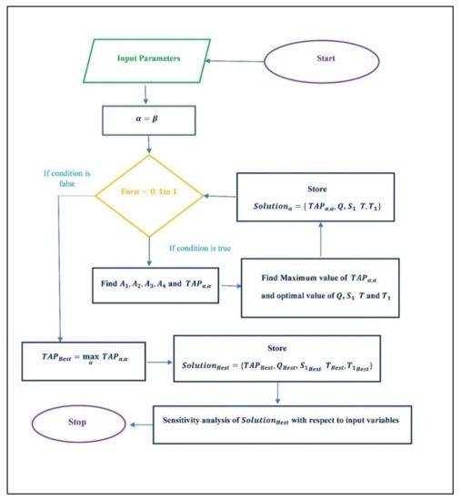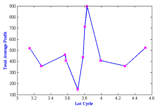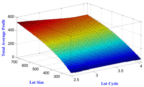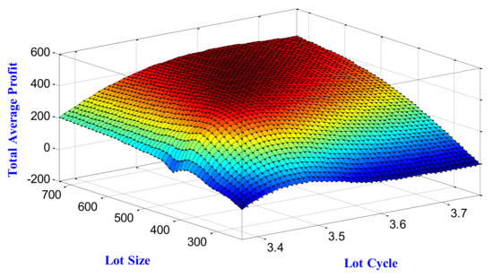Equation (17) represents a single objective decision scenario in which total average profit is the objective function to be minimized. Furthermore, initial inventory level (), lot size (), active inventory run phase (), total lot cycle () are the decision variables in Equation (17). It is customary to take the values of the orders of derivative and integration to identical for inventory problems. Thus, in the system given by Equation (17) reduces it to the form