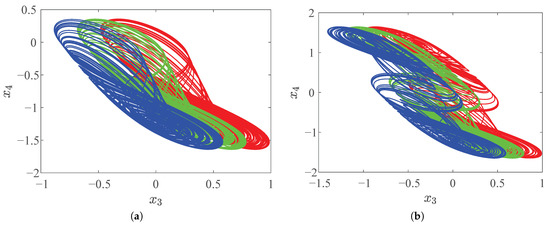 For a nonlinear system, adding a constant term after the uncoupled linear term of the variable that occurs only once in the system can offset the system (15). The constant is used as the control quantity, and the offset boosting can control the system offset. In Equation (15), variable satisfies the conditions of phase offset boosting. The constant term is added to the second dimension so we can obtain