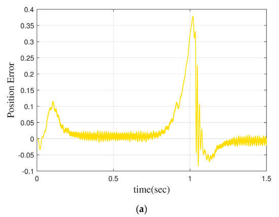 Figure 6 shows the angle error of the motor with PID or with FOMRAO under dynamic characteristics. It can be seen that without a new model reference adaptive controller, the rotor position error margin of the motor is relatively high when it runs under dynamic characteristics, reaching 0.4 rad. The rotor position error is only 0.09 rad after adding the MRAO.