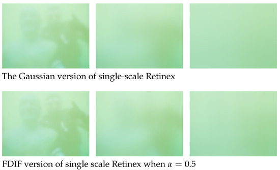 - A fractional integral-based Retinex and an improved fractional-order integral operator, which eliminated the drawback of classical fractional integral operator for large-kernel filtering and resulted in more accurate estimation for light images, was proposed in this paper.