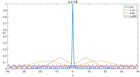 where the dependent variable denotes the complex wavefunction, i is the imaginary unity, ħ denotes the reduced Planck’s constant, is the position vector, t is the time and the Hamiltonian is given by where is a constant in dimensions of , which reduces to for where m denotes the mass of atomic particle, is the Laplacian, is the potential function and shows the order of the fractional derivative. The fractional Laplacian in this equation is used as a model to represent different heat kernels or Levy processes [19], thus it is commonly used in modeling different diffusive and stochastic processes in the nature as discussed in the introduction part of this paper. Thus, in the full form the fractional Schrödinger equation can be written as