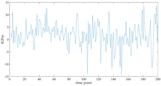 We performed 200 iterations of the fGPm (see Figure 2). The variance shown represents the measure of the dispersion of the distribution. A previous study [24] proved that the fGPm has a huge degree of variance, which causes the process to be heavy-tailed. The heavy-tailed characteristics of the fGPm indicate that the simulation path contains frequent long jumps.