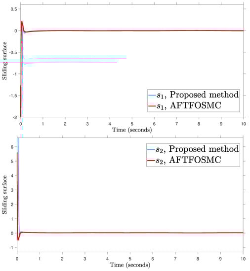 where represents the sliding surface, , , , and . Moreover, exponential values are , , , and the fractional order has :