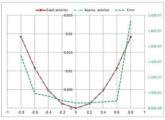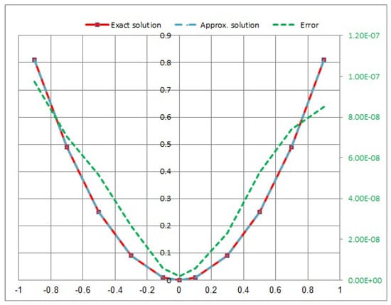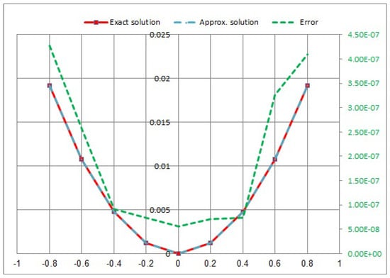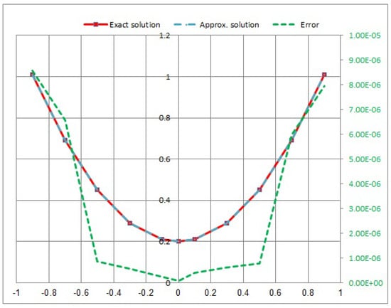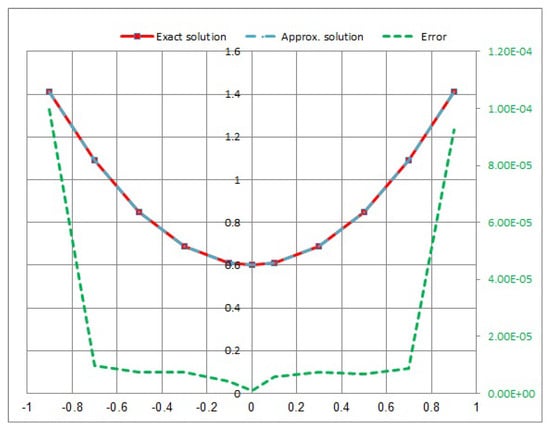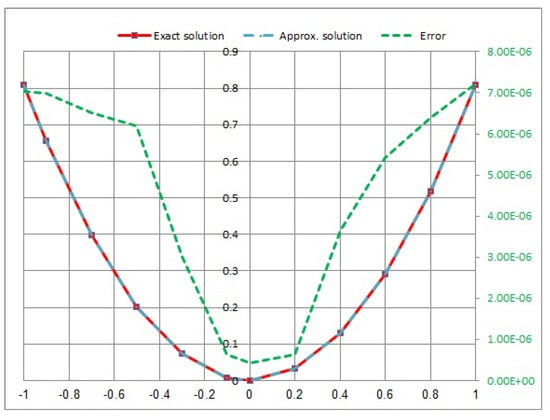 Table 2 presents the absolute error of Chebyshev polynomials for the different values of u with .
