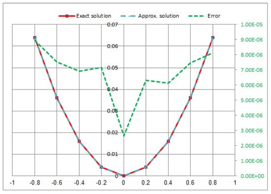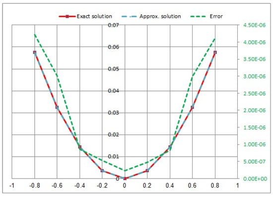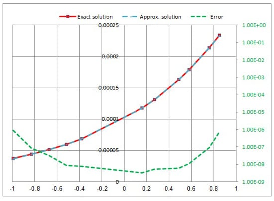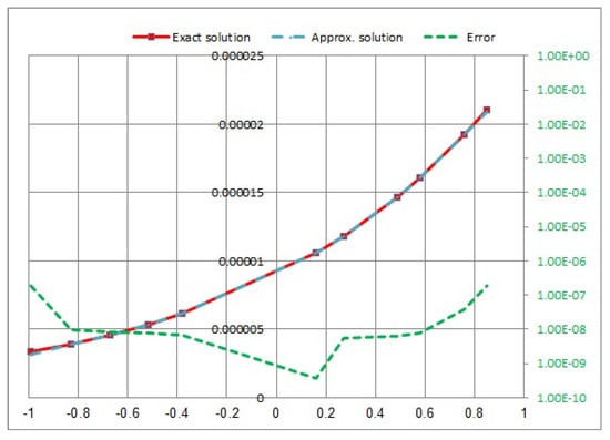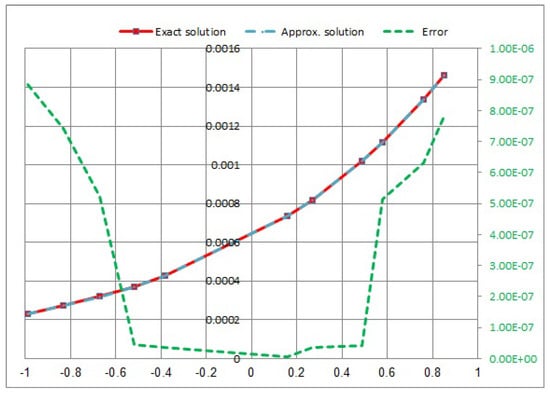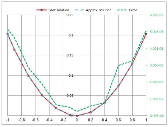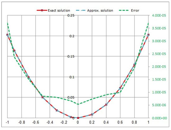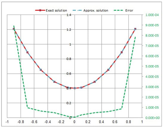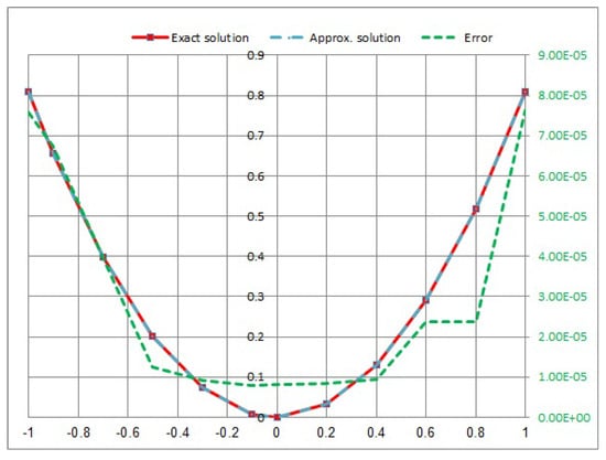 Table 3 presents the absolute error of the Chebyshev polynomials for different values of u with .