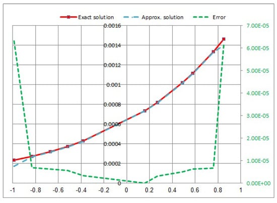 where the function is specified by laying as an exact solution. The kernel of position is , while the kernel of time is . Equation (42) will be computed for .