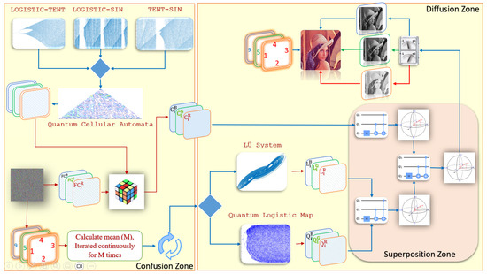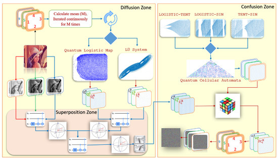 Meanwhile, despite the significant role of chaotic maps in designing modern cryptographic mechanisms, and as the traditional computer approaches its physical limits [25,26,27,28,29], researchers are beginning to study a new computing model, and quantum computers have produced a series of satisfactory encryption results. Given the quantum outstanding advantages of entanglement, superposition, and parallelism, quantum computing is widely used in all aspects of information science. With quantum computation’s rapid development, studies on image processing have been developed from classical image processing to quantum image processing (QIP), which has triggered researchers’ interest and is considered a new interdisciplinary subject that integrates quantum computing and digital image processing. Since one of the merits of quantum computers and quantum algorithms is that qubits obey the no-cloning theorem [30,31], which means no qubit can be cloned, quantum mapping theory has been introduced in image encryption schemes, aiming to improve the security level and practical value of image cryptography in the quantum era. Furthermore [32], quantum encryption protocols also include scrambling the pixel positions and/or changing the pixel value using chaos theory or any other quantum transformations.