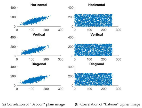 - The proposed scheme uses a secret key generated dependent on the original image to determine the number of cycles for both chaotic systems. Hence, it verifies that the proposed scheme has a strong resistance to chosen-plaintext attacks.