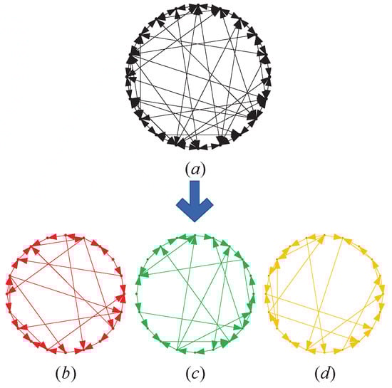 In Figure 1, the subgraph displays the topological structures of the MUPTS with 20 bus stops and three weights are selected. Subgraph , and represent the topological structures of three subsystems, i.e., , , and . Here, , , and describe passenger flow, congestion degree, and the departure frequency, respectively.