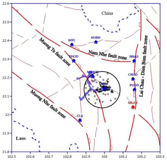 - Lizurek, G.; Wiszniowski, J.; Nguyen, V.D.; Dinh, Q.V.; Le, V.D.; Van, D.T.; Plesiewicz, B. Background seismicity and seismic monitoring in the Lai Chau reservoir area. J. Seismol. 2019, 23, 1373–1390. [Google Scholar] [CrossRef]