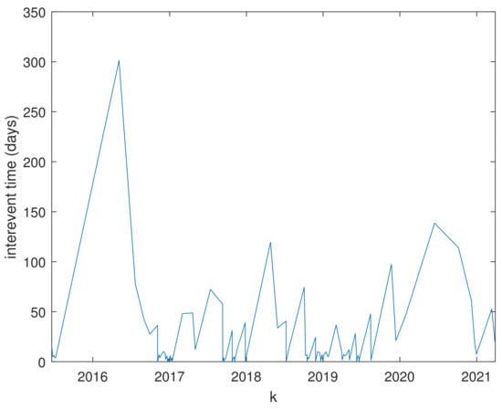 - Telesca, L.; Amatulli, G.; Lasaponara, R.; Lovallo, M.; Santulli, A. Time-scaling properties in forest-fire sequences observed in Gargano area (southern Italy). Ecol. Model. 2005, 185, 531–544. [Google Scholar] [CrossRef]