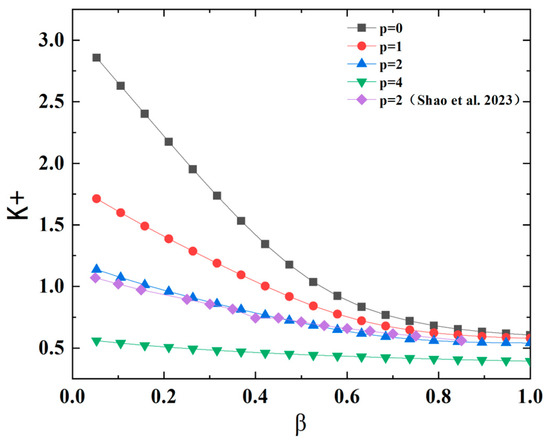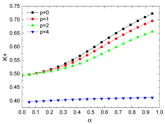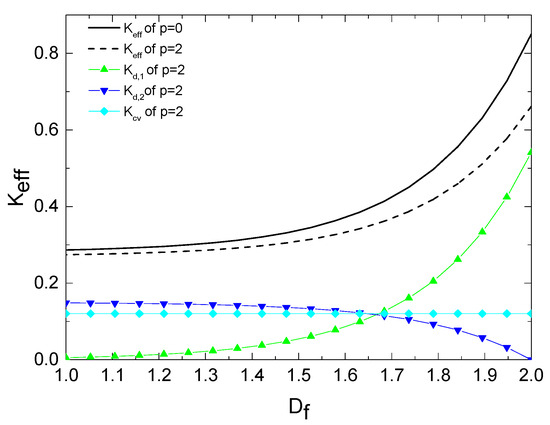 when m = 0, n = 0, and p = 0, the effective cross-sectional area is equal to the total cross-sectional area of main channels, . At this point, a single tree-like branching network can be seen as an undamaged channel, while the porous medium at this time can be seen as a porous medium with a fractal distribution of the diameter of the main pipe, which is similar to in Yu’s study [10]: