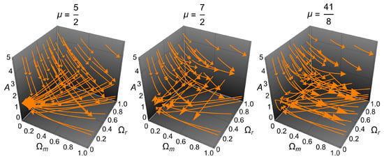 Therefore, from the compatibility conditions of the problem and the condition , and considering that the matter sources are radiation and cold dark matter, conditions are imposed on the parameter , which can take the discrete values at the equilibrium points. The system is then reduced to a one-dimensional system provided by (39) for .