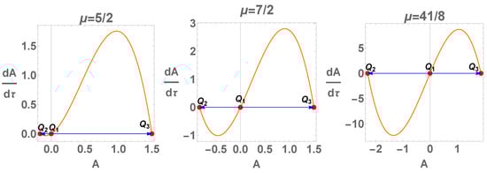 Figure 2 displays the flow of the one-dimensional system (39) for . Note that is not a physical point, and the late-time attractors are and .