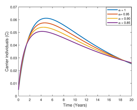 - Gul, N.; Bilal, R.; Algehyne, E.A.; Alshehri, M.G.; Khan, M.A.; Chu, Y.M.; Islam, S. The dynamics of fractional order Hepatitis B virus model with asymptomatic carriers. Alex. Eng. J. 2021, 60, 3945–3955. [Google Scholar] [CrossRef]