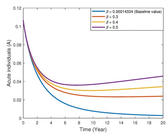 Otherwise, as long as there is an infection, individuals with acute disease will continue to increase rapidly. So, it becomes for , and .