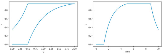 Finally, function is used to represent the Gaia state changes. The definition of this function is inspired by phase transformations that presents hysteretic behavior [40]. On this basis, Gaia state varies from a state of harmony , to a critical reaction state, represented by . Therefore, the following function is proposed,