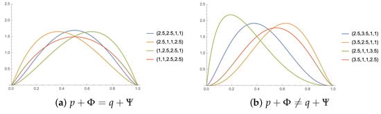Any of the PDFs in the underbrackets is readily extended considering non-integer positive exponents. Thus, whenever the BetaBoop function , in (1), is integrable—a sufficient condition is , see Appendix A, , in (7), is a PDF of a RV.