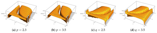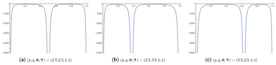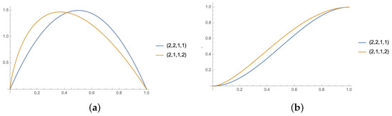 where , is the Beta function or Euler’s integral of the first kind, which can be expressed in terms of the Gamma function or Euler’s integral of the second kind, , namely , is a subfamily of the broader family of BetaBoop PDFs in (7) (), and the ultimate and more serious reason is that we love Betty Boop. As vox populi says, “good girls go to Heaven, Betty Boop goes everywhere”, so we expect BetaBoops to lead us everywhere—namely, fractional calculus and generalized monotonicity, convexity and unimodality in Section 3, the logistic and the Gompertz population models and associated maps in Section 4; Richards [30], Blumberg [16], and Turner et al. [18] population models, the hyper-logistic and the hyper-Gompertz maps, and population models connected to EV and geo-EV laws in Section 6. In fact, the logistic parabola is an inspiring connection between the logistic map and BetaBoop PDFs (in this case, the middle order statistic (OS) of three independent standard Uniform RVs). For general information on the Gamma and on the Beta functions, see Whittaker and Watson [31] and Erdélyi et al. [32].