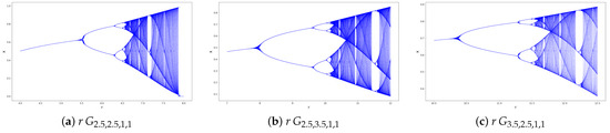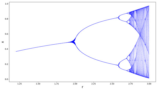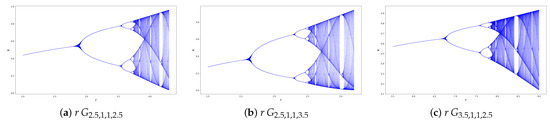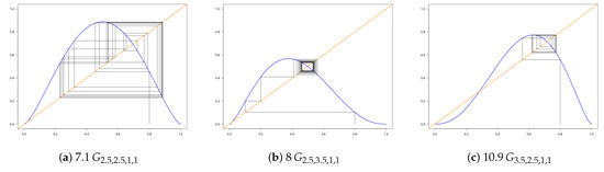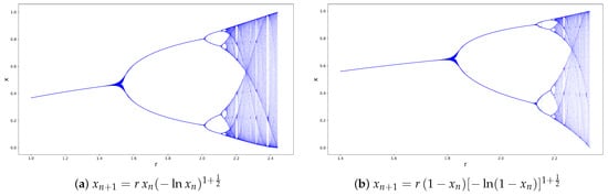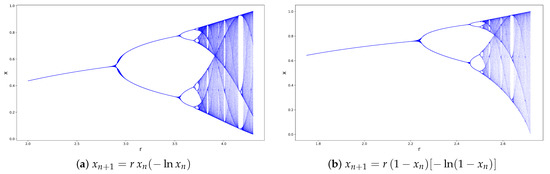 It has been a shock when May [27] published a short note on the very complicated dynamics of the nonlinear map resulting from the logistic DE by using Euler’s algorithm to obtain a lattice approximating the difference equation to the DE in (2). The far-fetched idea of solving a straightforward quadratic equation using the fixed point method has been the root of explosive theoretical developments in the fields of self-similarity, fractals, chaos, and inspired far-reaching consequences in the applications of Mathematics to many scientific fields. Although some skeptics such as Dubois [28] claimed that “the chaos emerging from the so-called chaos map is [not] due to […] fundamental biological properties”, Waliszewski and co-workers and many others insisted on biological examples of fractals, even within our body, such as the growth of cancer tumors, the lungs’ fractal geometry, or the fractal circulatory branching network, where blood vessels branch and branch down to the width of a capillary, see Lorthois and Cassot [29]. Consequently, a sketch of the dynamics of maps tied to extremal distributions has been considered.
