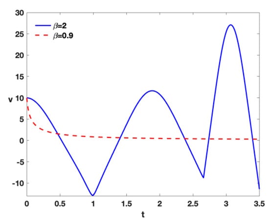 - In order to illustrate the expediency of using the fractal approach in comparison with the integer approach, Figure 9 shows that the integer approach is not practical, and the tumor cells are still growing with , but the fractional approach is more realistic at this point and the number of tumor cells drops dramatically.
