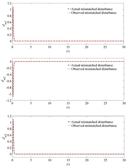 The responses of actual and observed mismatched disturbances dm.