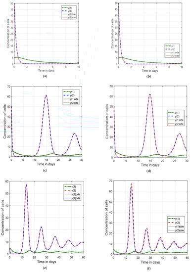 Figure 5, the tumor cell population reduced by using only a small constant initial dose of chemotherapy for a short period of time. The idea of using the continuous block implicit hybrid methods is to accurately determine solutions of the modeled differential equations so that even a minimum initial dose of treatment, that is, the last term of Equation (3),