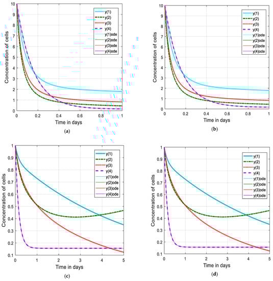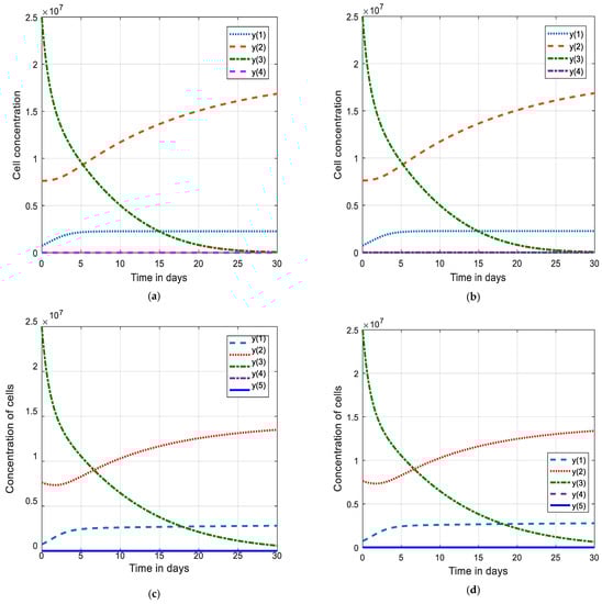 Figure 6, we solved and analyzed a model of cancer disease which considered five populations involving