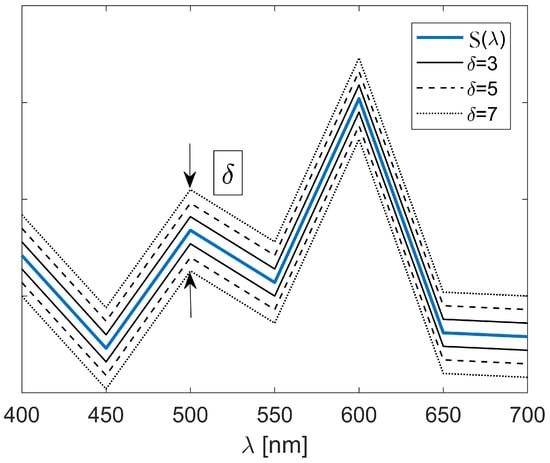 One approach we embraced for visualization of the generated synthetic multi-spectral images is based on a linear model of color formation proposed in [36]. In this approach, the resulting RGB triplet is obtained by integrating the product of the spectral reflectance curve of each pixel and the spectral sensitivity curve of a camera over the corresponding interval of wavelengths in the visible spectrum. Other linear methods for visualization exist. In [49,50], the RGB values are computed as projections of the hyperspectral pixel values on a particular vector basis, similar to a stretched version of the CIE 1964 color-matching functions, a constant-luma disc basis, or an unwrapped cosine basis.
