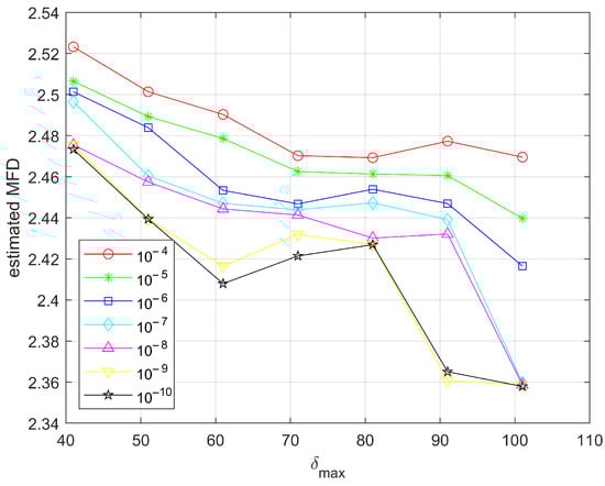 The estimated multi-spectral fractal dimension (MFD) of multi-spectral fractal image with low generated complexity ().
