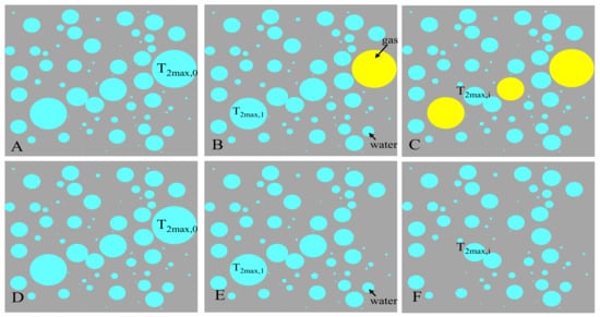 - In water-saturated rock, when macro-pores fill with gas, residual water-saturated pores are still satisfied with the fractal theory. As the NMR signal of the gas-filling pores is too small to be measured, the fractal dimension from NMR changes. As decreases, increases, but has little variation, and (the increment of ) is directly related to the water saturation of gas-bearing tight sandstone. When decreases to , approximately equals 3. As the pore structure transferred from Type A to Type E, the maximum value of (the difference between under state and that under 100% state) becomes smaller;