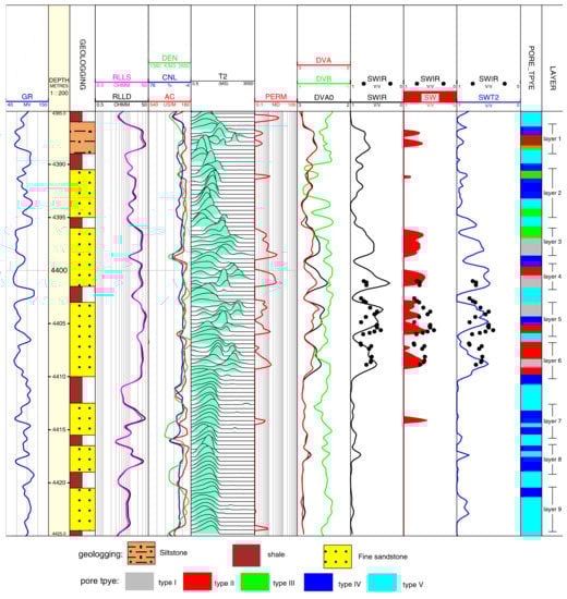 - For T2, the relaxation characteristics of oil-bearing sandstone differ greatly from that of gas-bearing sandstone [36]. The water saturation prediction model for gas-bearing sandstone proposed in this paper cannot be applied in oil-bearing sandstone reservoirs, but it still has reference and guiding significance for deriving a water saturation prediction model for oil-bearing sandstone;