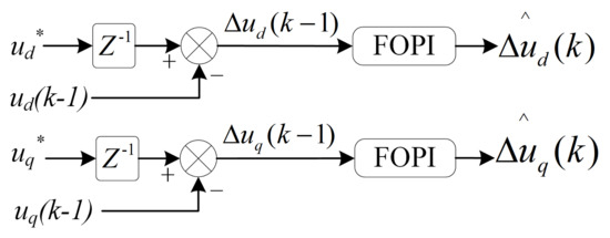where and are the q-axis and d-axis compensation voltages of the kth PWM period, and are proportional and integral gains of d-axis FOPI error voltage controller, and and are proportional and integral gains of q-axis FOPI error voltage controller.