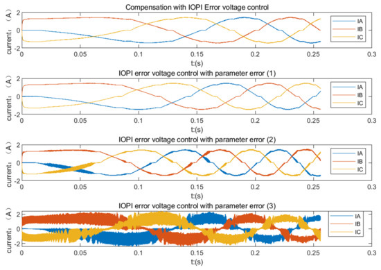 The three-phase current response of the optimal IOPI error voltage control in the error motor parameters.
