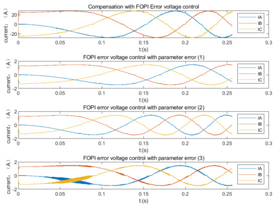 The three-phase current response of the optimal FOPI error voltage control in the error motor parameters.