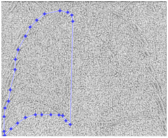 Figure 14 and Figure 15 present the defined masks for the left lung and right lung, framed in blue borders.