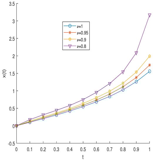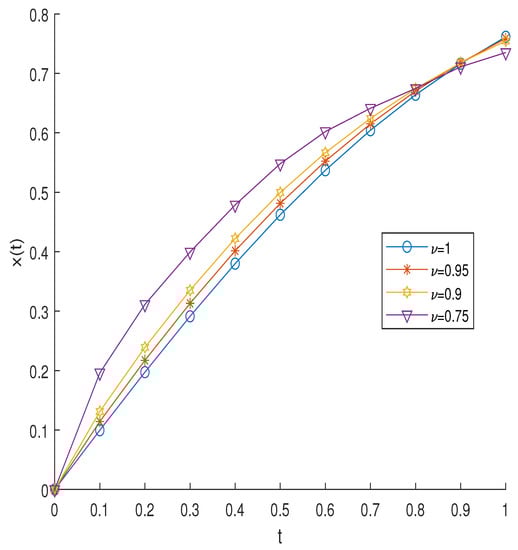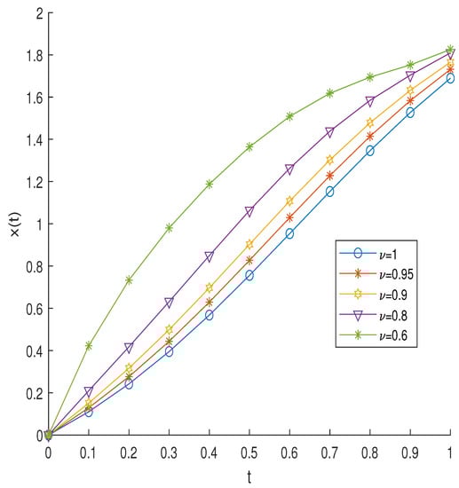 ([]). The Caputo derivative of order ν with the lower limit zero for a function x is defined as