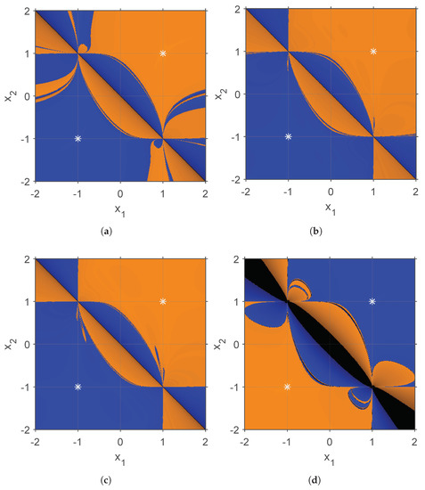 - Chicharro, F.I.; Cordero, A.; Torregrosa, J.R. Drawing dynamical and parameters planes of iterative families and methods. Sci. World J. 2013, 780153. [Google Scholar] [CrossRef] [PubMed]