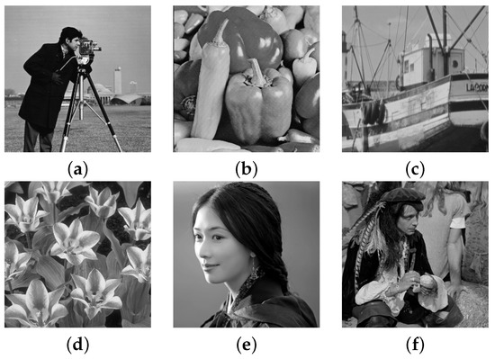Test images: (a) Camera, (b) Peppers, (c) Boats, (d) Tulips, (e) Lin, (f) Man.