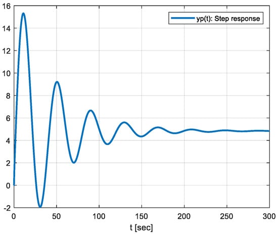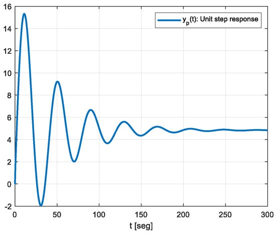 37], using 50 particles and 50 iterations. It should be noted that any other optimization technique could also be used to determine the controller’s parameters, and it is at the discretion of the designer. First, we analyze the open-loop response of the plant to a unit step input and zero initial conditions to observe the behavior of the oscillations during the transient period before reaching the steady-state regime. The result is shown in