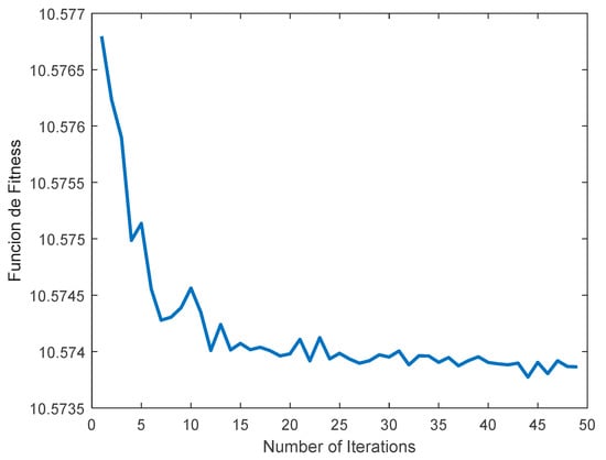 Figure 10 shows the evolution of the objective or fitness function while increasing the number of iterations of the PSO method in the case of the FO-DMRAC.